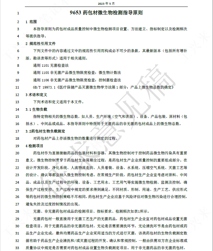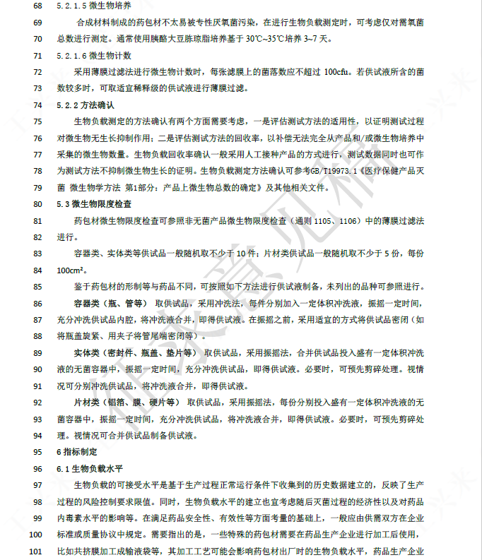 2.对标准范围的说明本指导原则着重解决各种药包材成品微生物检测该检测什么、怎么检测、指标是什么以及常规检测策略的问题,配套药包材标准体系中各通则的构建,为药包材生产企业质量标准的建立提供指南。药包材生产环境的沉降菌、浮游菌、表面微生物以及工艺用水/用气等通用微生物检监测技术不在本指导原则范围以内。
